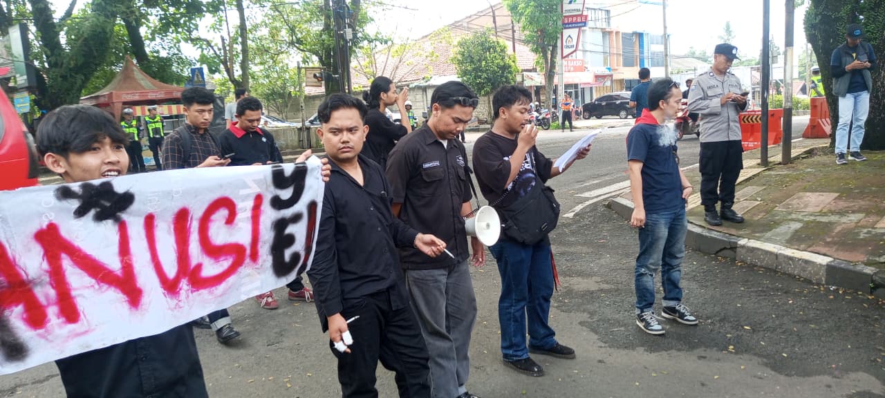 Gerakan Mahasiswa Nasional Indonesia (GMNI) Kabupaten Cianjur menggelar aksi unjuk rasa di Gedung DPRD Kabupaten Cianjur