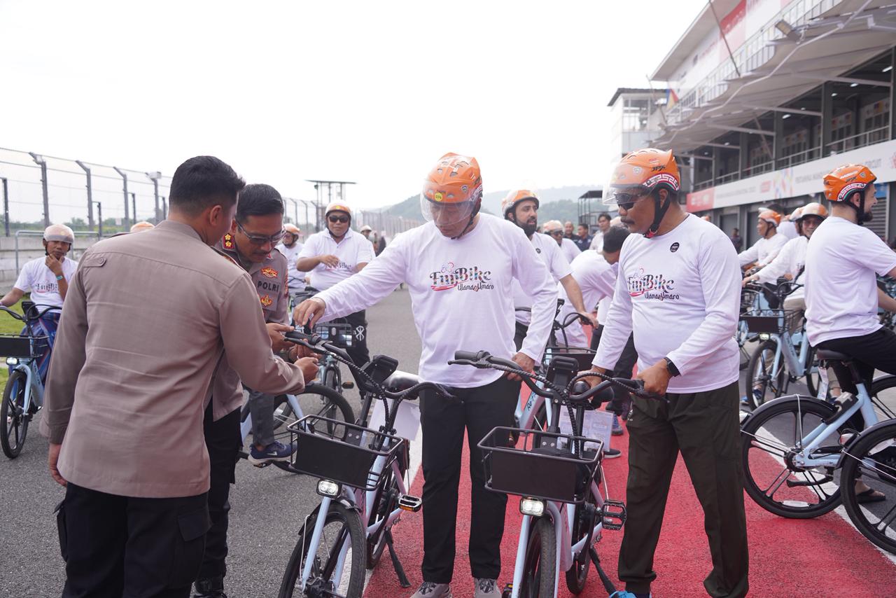 Kegiatan gowes santai mulai pukul 16.00 Wita. Rute di kawasan sirkuit ikonik Lombok Tengah itu dipilih, untuk menghadirkan nuansa kebersamaan sekaligus sport tourism. Wakapolda NTB terlihat menyatu bersama peserta dengan balutan pakaian olahraga.
