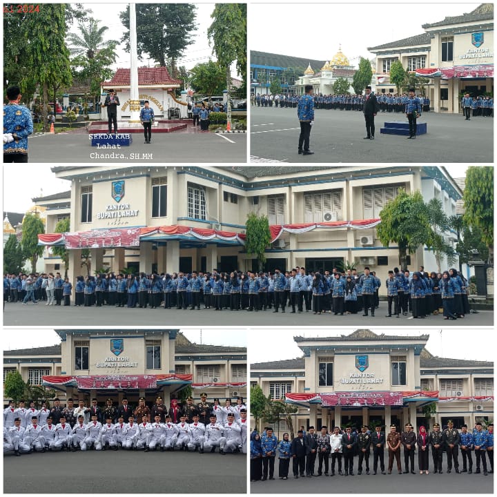 Sumsel-Lahat | Pemerintah Kabupaten Lahat laksanakan Upacara Bendera dalam rangka memperingati Hari Lahir Pancasila yang bertempat pada tanggal, 1 Juni 2024.