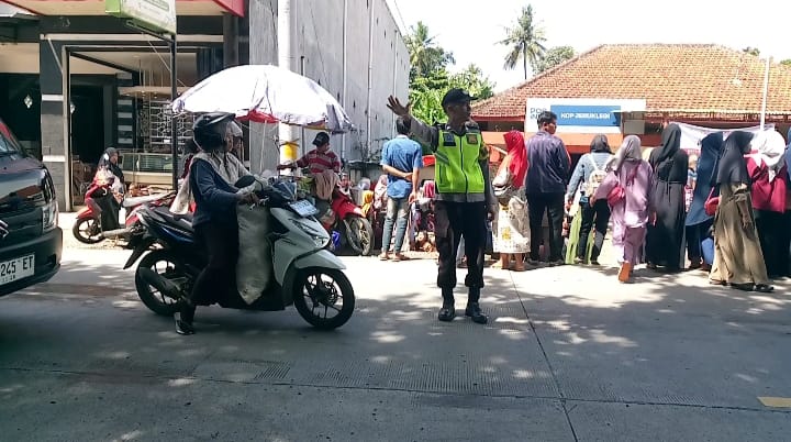 Journal News // 24/11/2025 Cilacap , Bhabinkamtibmas Polsek Jeruklegi Iptu Giri Yuwono turun langsung mengatur arus lalu lintas tepat di depan Kantor Pos Jeruklegi dalam rangka penyaluran Bansos BLTS ( Bantuan Langsung Tunai Sementara ) yang di salurkan langsung kantor pos masing-masing Kecamatan .