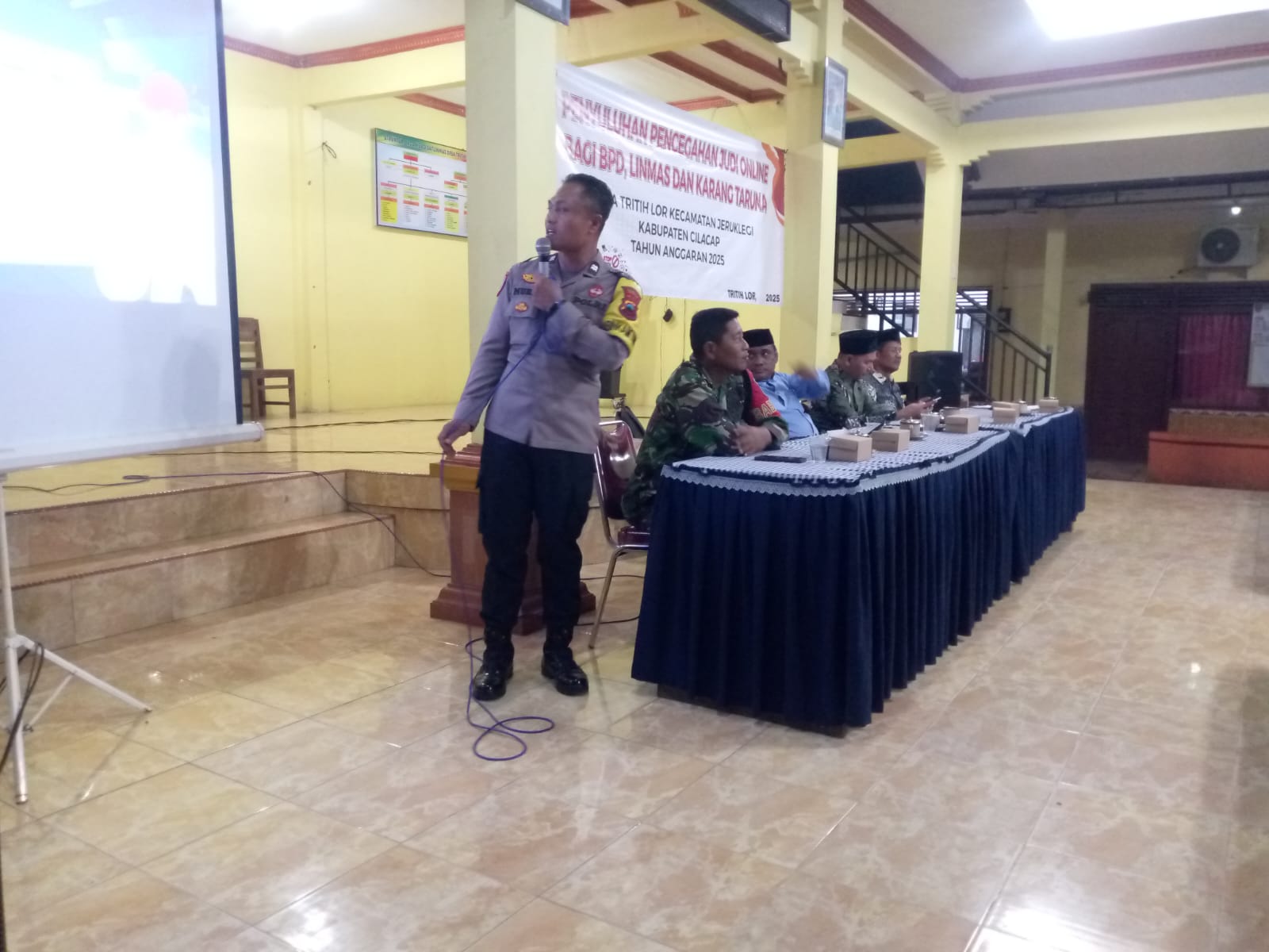 Journal News // Cilacap Jumat 21/11/2025 , Desa Tritih Lor Kecamatan Jeruklegi Kabupaten Cilacap mengelar penyuluhan pencegahan Judi Online di pendopo Desa berlangsung lancar dan tertib .