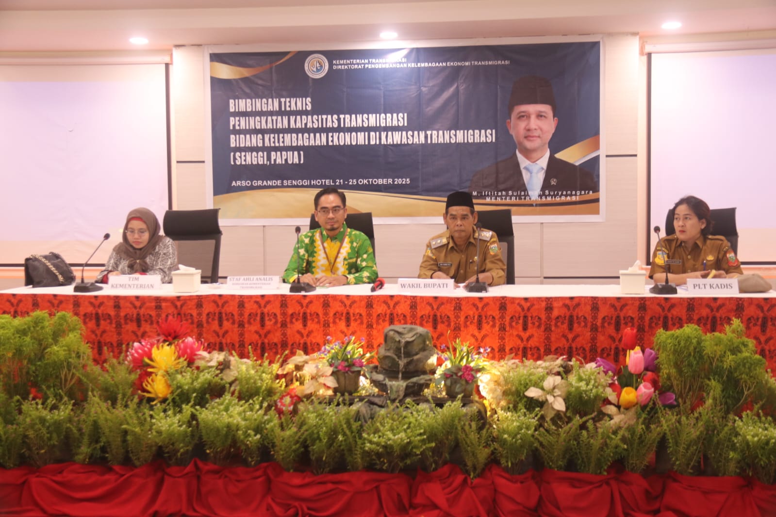 Kegiatan ini diselenggarakan oleh Direktorat Pengembangan Kelembagaan Ekonomi Transmigrasi, Kementerian Transmigrasi dan berlangsung selama lima hari, mulai tanggal 21 hingga 25 Oktober 2025, di Hotel Grande Arso II, Yuwanain.