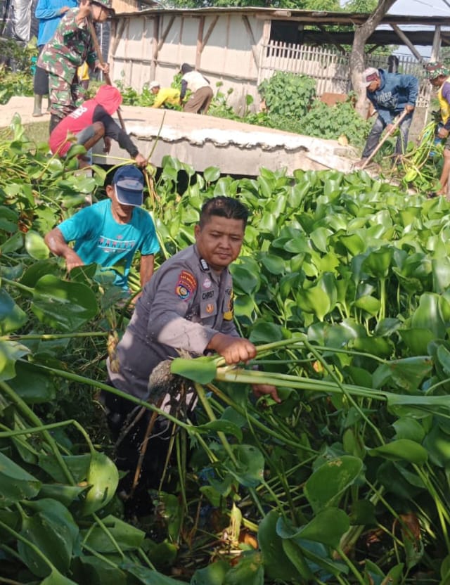 Dalam kegiatan tersebut, Polri dan TNI hadir ditengah warga binaan dengan menjebur ke sungai guna membersihkan eceng gondok dan tumpukan sampah yang tersangkut di eceng gondok, serta mengangkat sampah rumah tangga dan material lain yang berpotensi menghambat aliran air sungai.