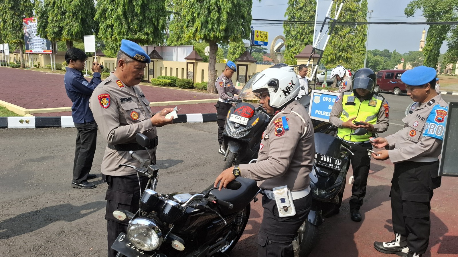 JOURNAL NEW //Sebagai langkah pengontrolan dan pengawasan serta penegakan disiplin terhadap kendaraan anggota, Propam Polres Pekalongan melaksanakan razia di pintu masuk Gedung Polres Pekalongan pada Senin 14 Oktober 2024.