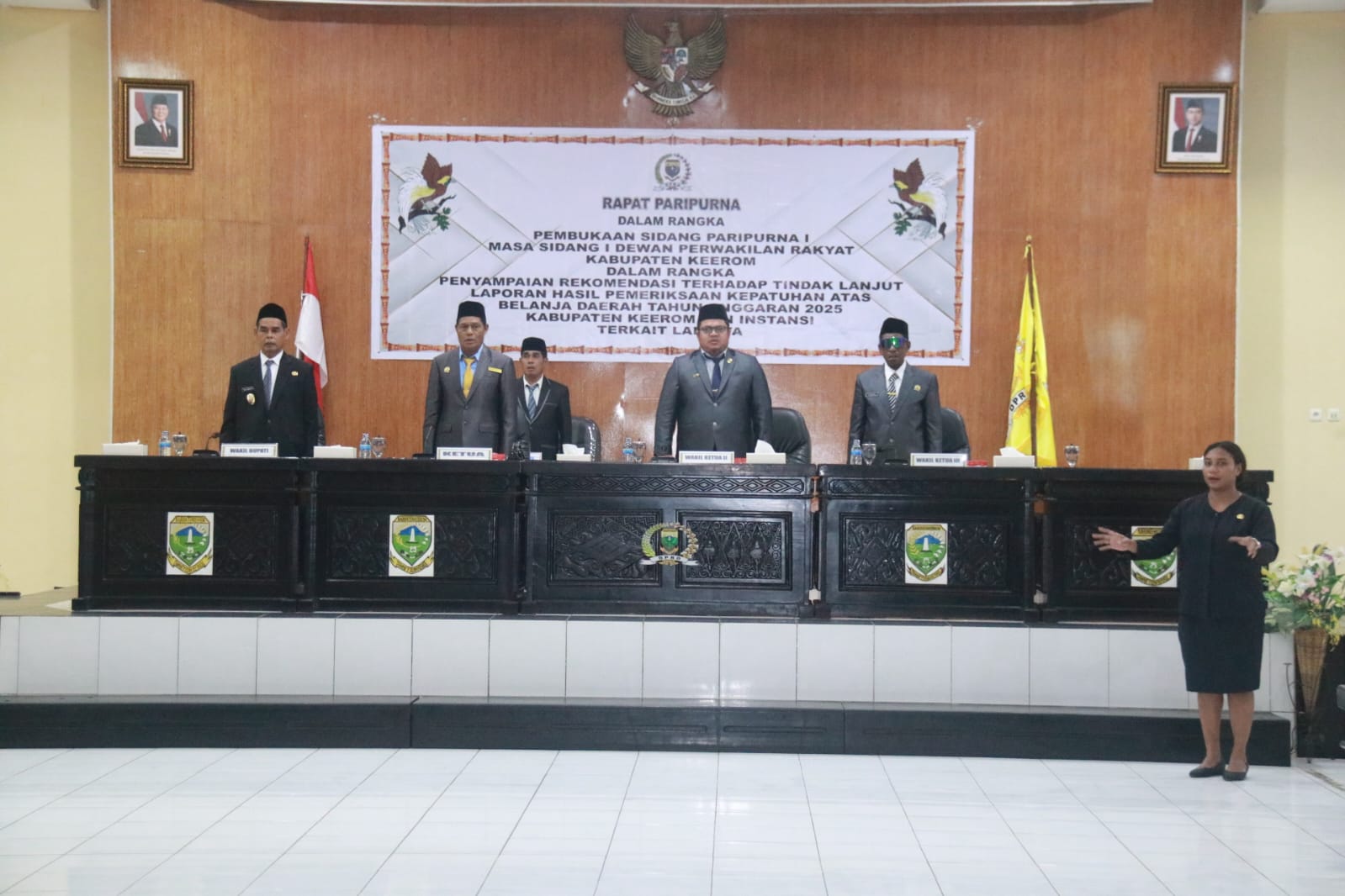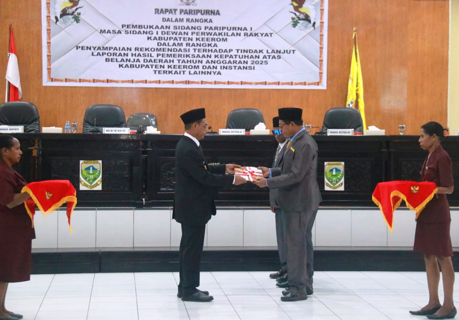 Pembukaan masa sidang I DPRK Keerom dalam rangka penyampaian rekomendasi terhadap tindak lanjut laporan hasil pemeriksaan kepatuhan atas belanja daerah TA 2025 Kabupaten Keerom dan Instansi terkait lainnya.