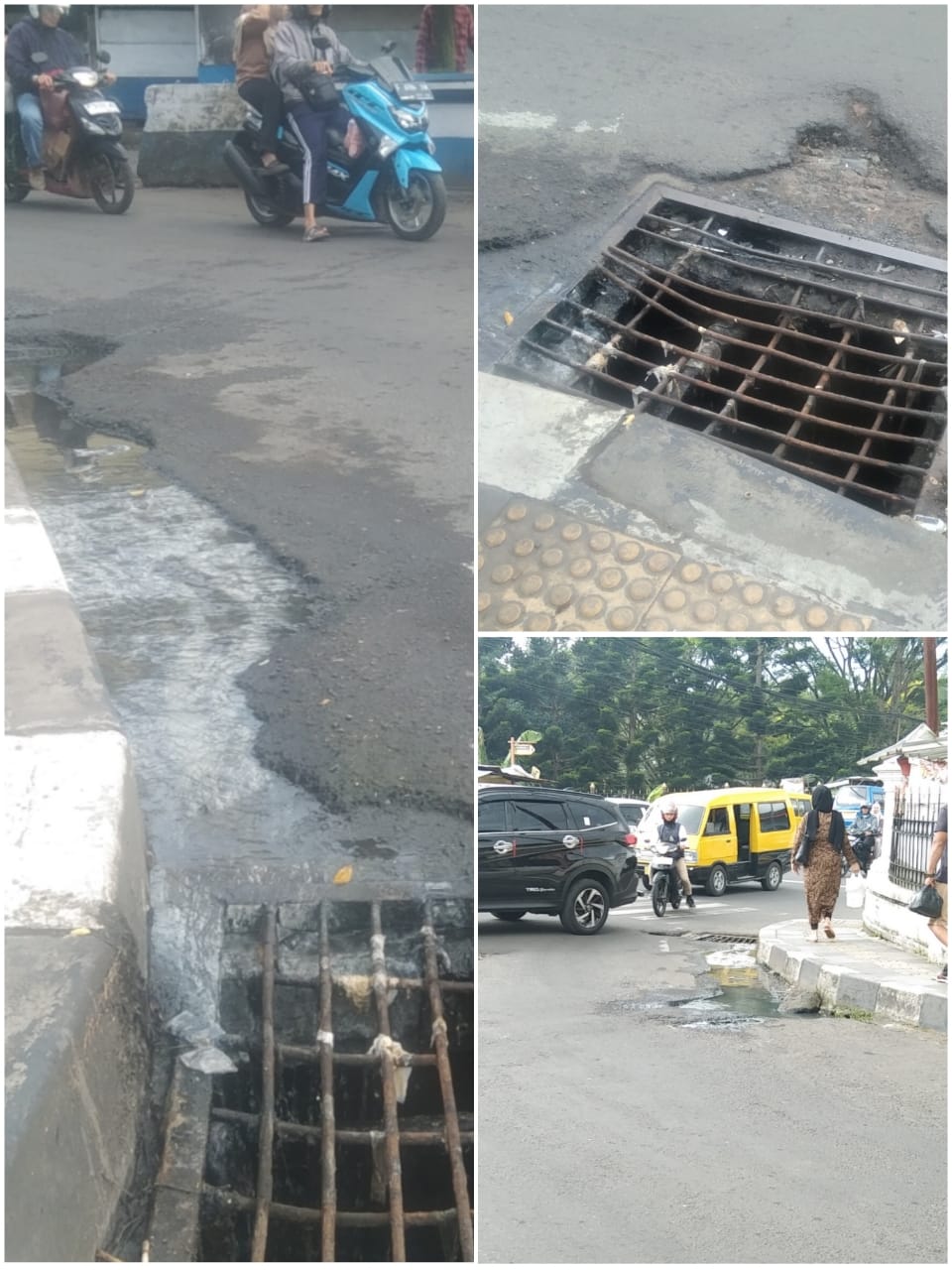 Sudah bertahun-tahun drainase yang berada di samping Kantor Pos Cipanas, tepatnya di simpang empat Pos 55, arah jalan Makam Pahlawan, Desa Cipanas, Kecamatan Cipanas Kabupaten Cianjur Jawa Barat, Sering mengalami kerusakan, bila di musim penghujan, air kotor akan meluap ke jalan.