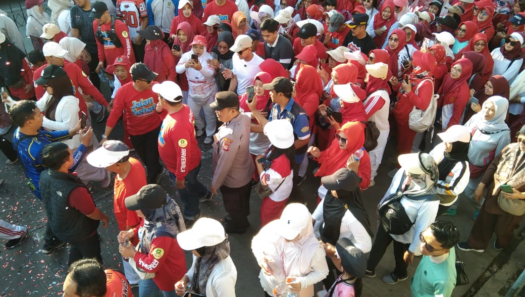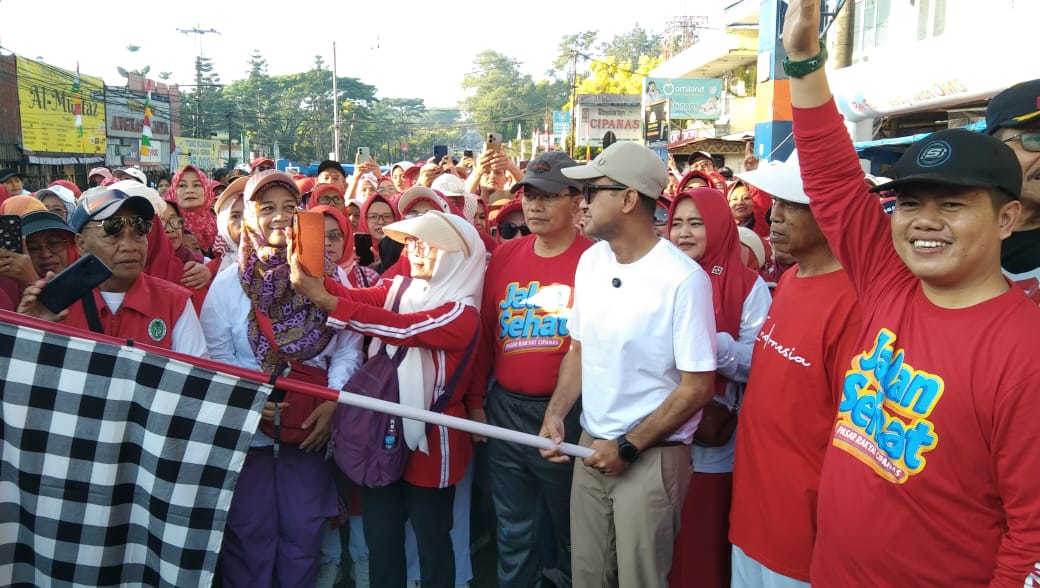Dan dihadiri forkopimcam, kuperdagin Cianjur, unsur TNI Polri, Kepala Desa Cipanas H, M, Agus Saputra, S.Sy., dan ribuan peserta jalan sehat.
