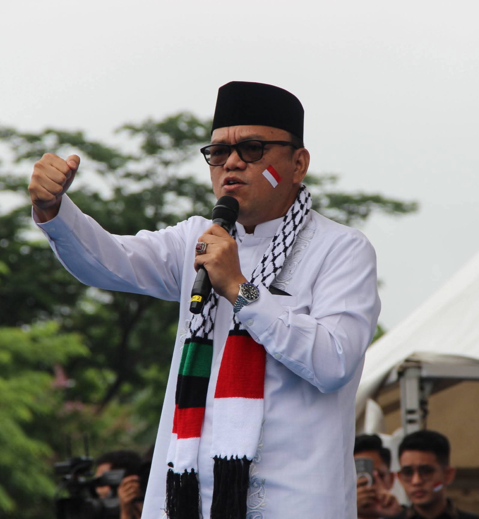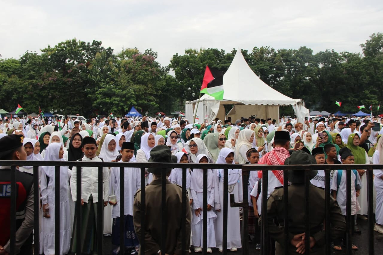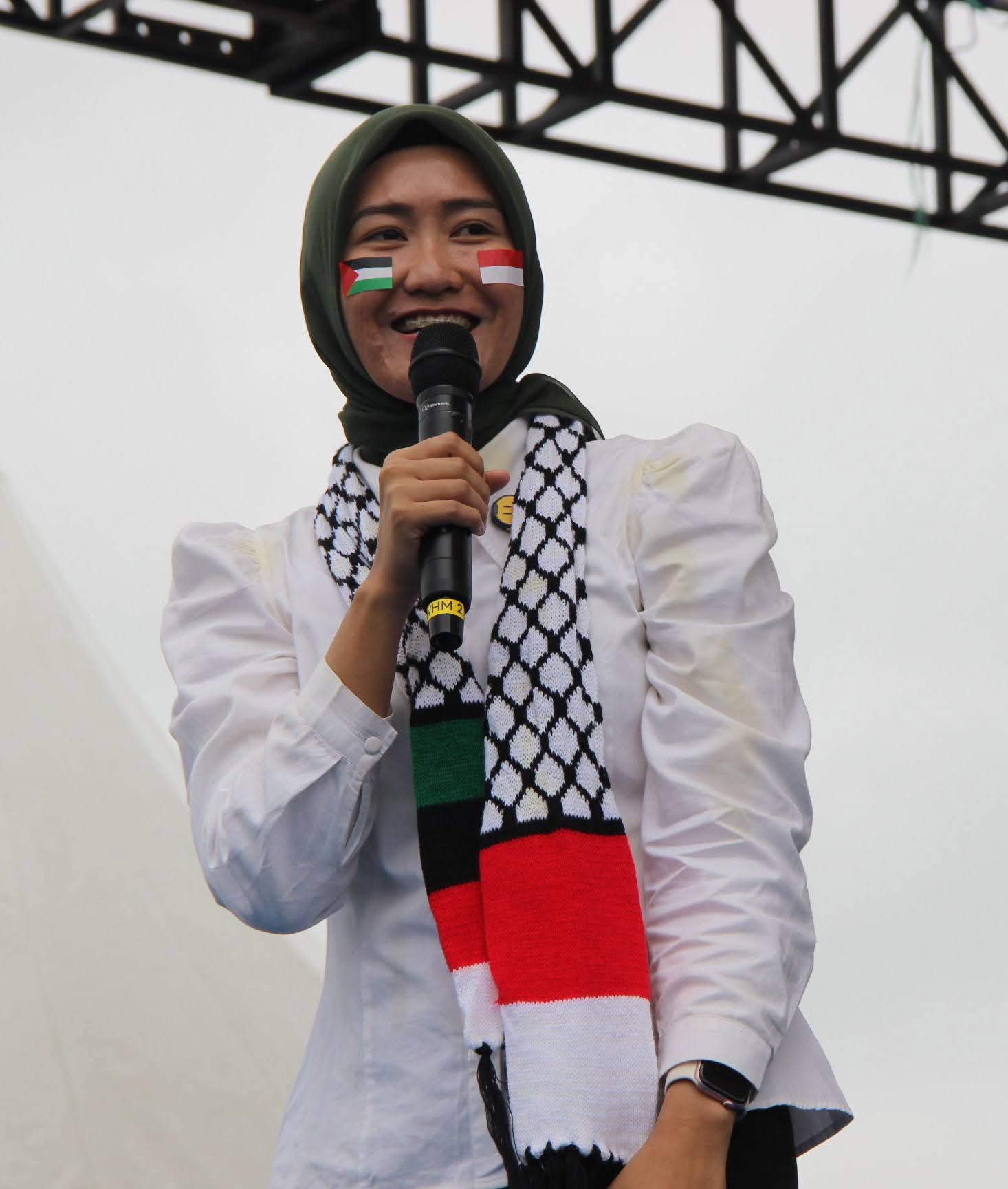 Palestina agar suara kita didengar juga walaupun sedikit didengar Allah agar kekuatan ini ikut membantu Mensupport aksi kemanusiaan kita terhadap pembantaian, pembunuhan dan penjajahan bangsa palestina yang sudah berlangsung 77 Tahun, dalam satu tahun terakhir ini pembunuhan yang kejam kalau menewaskan ratusan ribu orang Anak-anak kehilangan Bapak-bapak yang Anak-anak istri kehilangan suami suaminya serta istri mereka meninggalkan rumah di bom dihancurkan karena itu kita berdiri disini ini ingin memberikan berita kepada dunia bahwa kita bersama Palestina.
