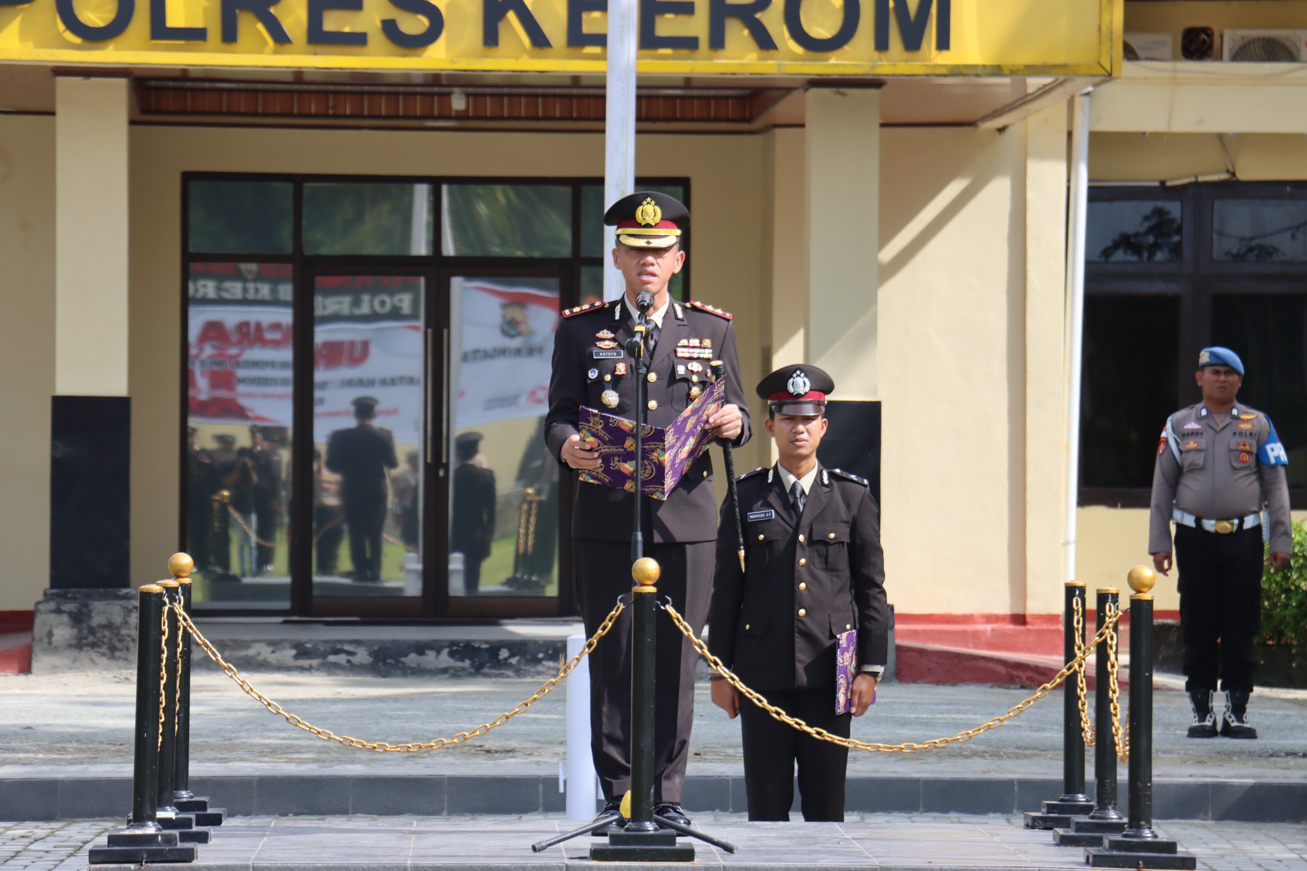 Dalam amanatnya, Kapolres Keerom AKBP Astoto Budi Rahmantyo, S.H., S.I.K., M.H menyampaikan bahwa momentum Sumpah Pemuda merupakan refleksi penting bagi seluruh generasi penerus, khususnya para anggota Polri, untuk terus menanamkan semangat persatuan dan nasionalisme di tengah berbagai tantangan bangsa yang semakin kompleks.