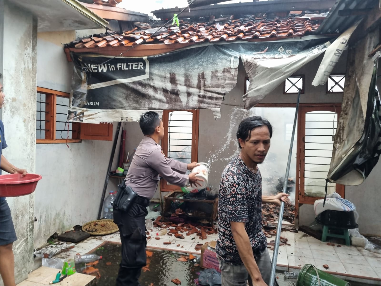 “Gerak cepat anggota Dalmas yang mengetahui adanya kebakaran ini segera membantu warga memadamkan api tersebut. Tampak juga anggota Sat Lantas yang tiba di lokasi melakukan pengaturan arus lalu lintas,” katanya.