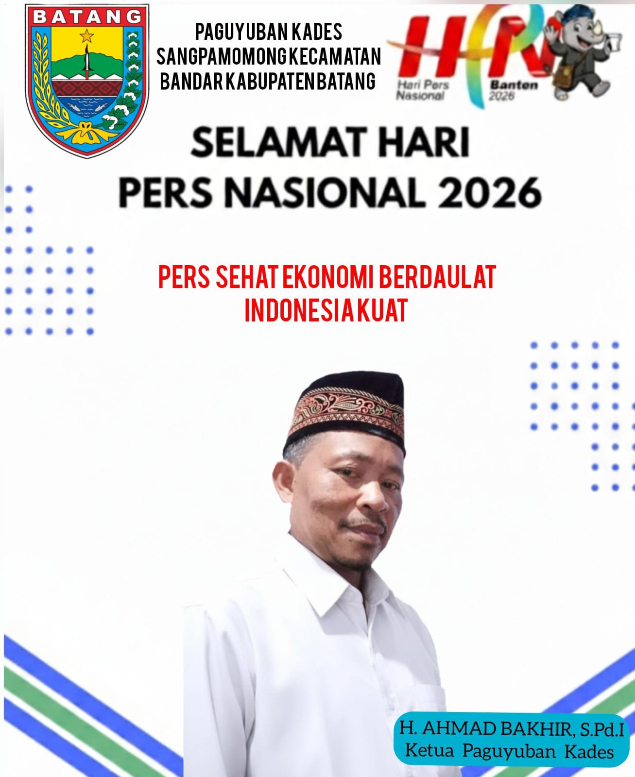 Ketua Paguyuban Kades Sangpamomong Kecamatan Bandar Kabupaten Batang, H.Ahmad Bakhir, S.Pd.I Mengucapkan Selamat Hari Pers Nasional 2026