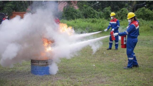 Instruktur pelatihan Pertamina HSE Training Center, Syamsul Daniel, menekankan pentingnya penguasaan penggunaan APAR sebagai langkah awal penanganan kebakaran.