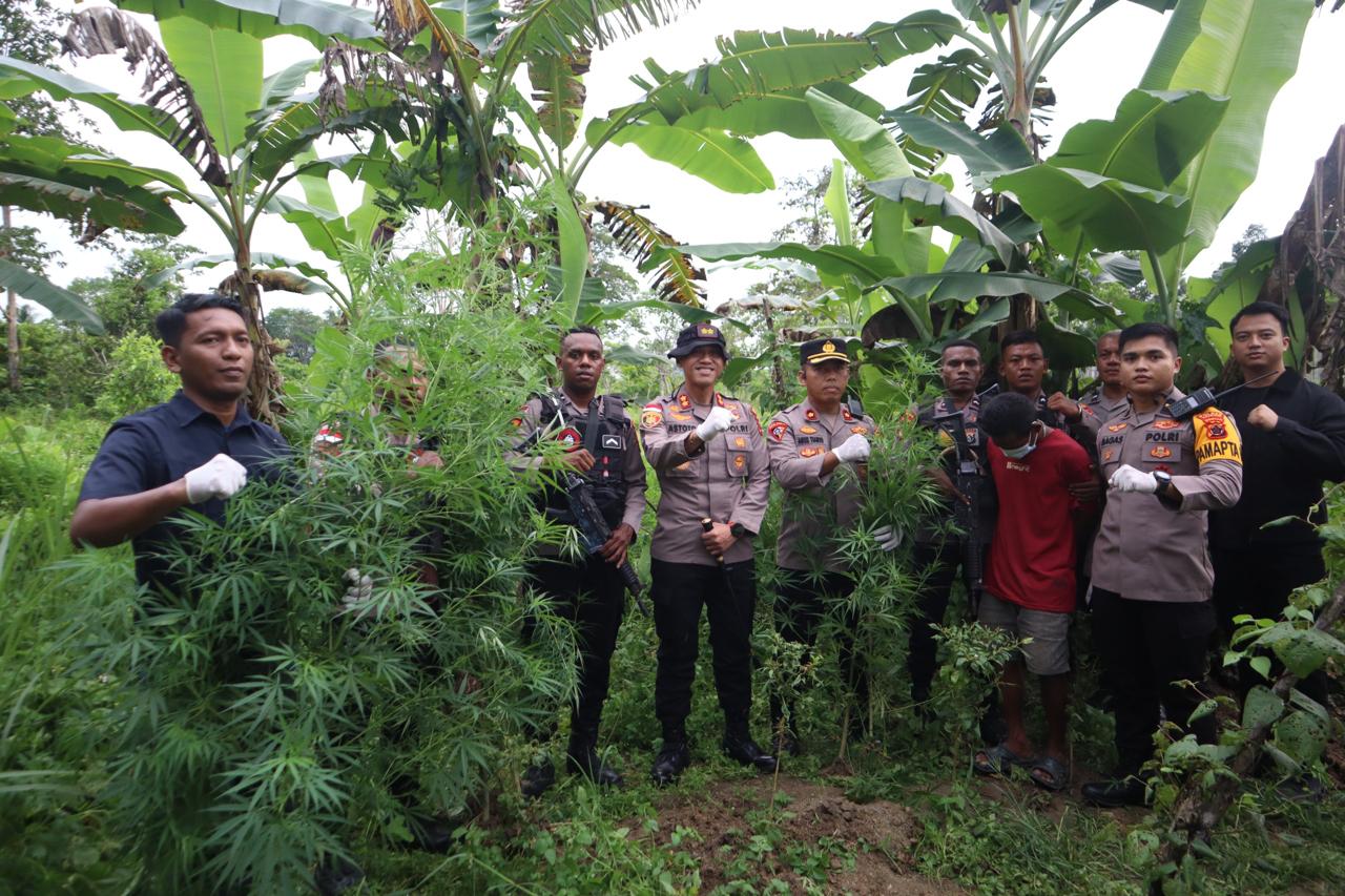Komitmen Berantas Narkoba, Polres Keerom Temukan Ladang Ganja di Belakang Pemukiman Warga.