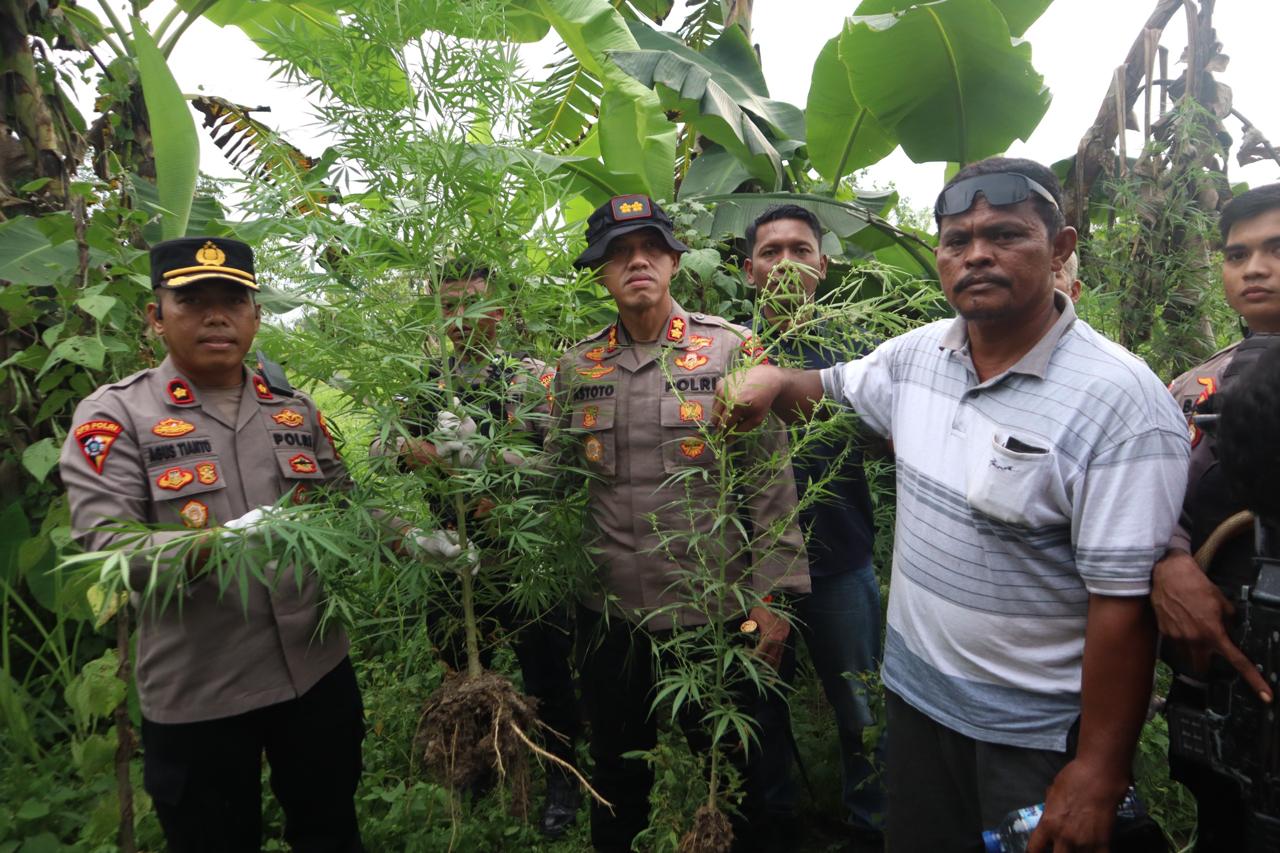 Kronologis kejadian bermula pada Senin (02/03/2026), saat anggota Satresnarkoba menerima informasi bahwa terduga pelaku menawarkan ganja dalam bentuk pohon sebanyak satu batang. Menindaklanjuti informasi tersebut, pada keesokan harinya anggota melakukan pengecekan ke lokasi yang dimaksud dan mendapati delapan pohon ganja dengan tinggi kurang lebih dua meter yang ditanam di lahan tersebut.