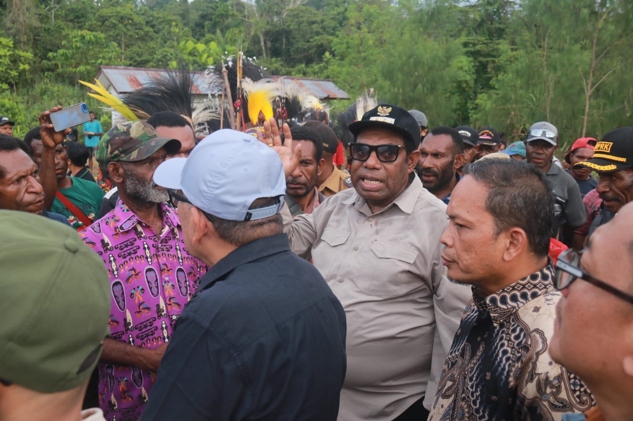 Kehadiran jajaran Pemerintah Pusat bersama Bupati Keerom disambut antusias masyarakat dengan tarian tradisional sebagai bentuk penghormatan.