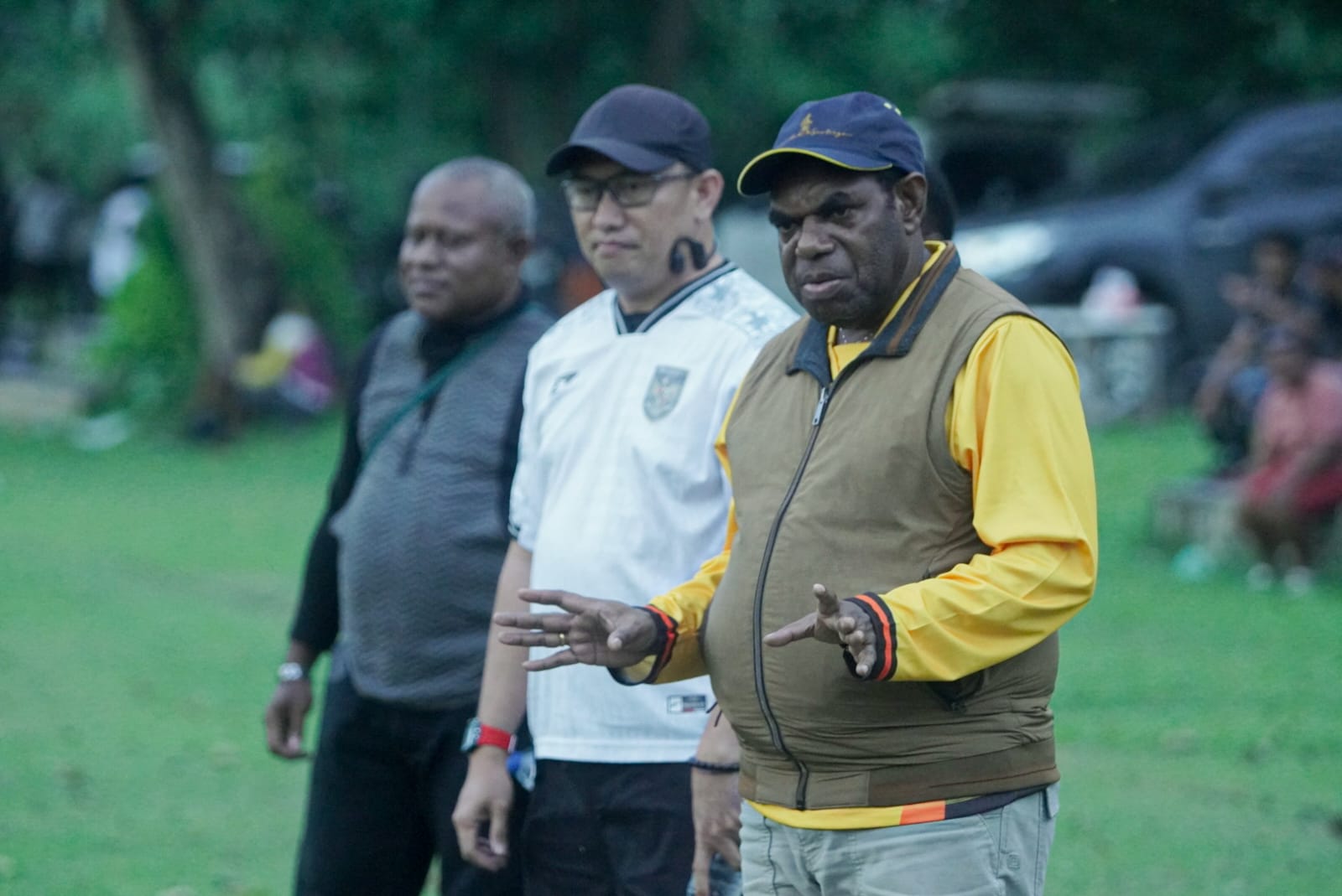 Journal News.id // Bupati Keerom Piter Gusbager hadir langsung di lapangan untuk menyaksikan sekaligus memberikan motivasi bagi Tim sepakbola PERSIKER KEEROM.