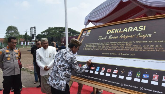 Journal news.id.KABUPATEN CIREBON — Bupati Cirebon, Drs. H. Imron, M.Ag melepas Kirab Pemilu 2024 di Stadion Ranggajati, Kecamatan Sumber, Kabupaten Cirebon, Sabtu (18/11/2023).