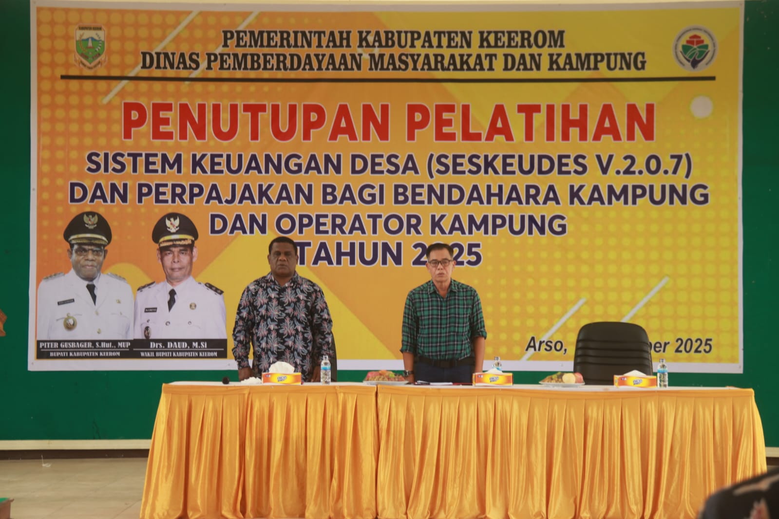 Journal News id // Mewakili Bupati Keerom Piter Gusbager, PJ. Sekretaris Daerah Drs. Stenly N. Moningka menutup secara resmi Pelatihan Sistem Keuangan Desa (Seskeudes V.2.0.7) dan Perpajakan Bagi Bendahara dan Operator Kampung tahun 2025, Senin (22/12/25), di Gedung Pramuka Arso Swakarsa.