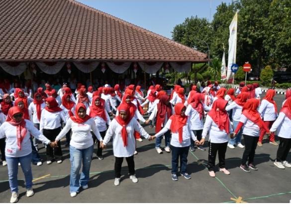 Journal news.id.KABUPATEN CIREBON — Tim Penggerak Pemberdayaan dan Kesejahteraan Keluarga (PKK) dan Dharma Wanita Persatuan (DWP) Kabupaten Cirebon menggelar pertemuan rutin sekaligus sembari memperingati HUT ke-79 Kemerdekaan RI.