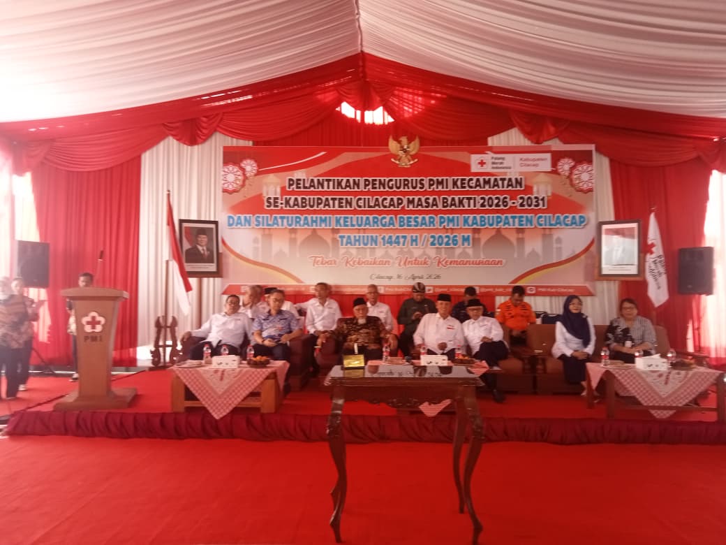 CILACAP // Journal News – Palang Merah Indonesia (PMI) Kabupaten Cilacap resmi memperkuat barisan strukturnya hingga ke tingkat akar rumput. Sebanyak pengurus PMI dari 24 kecamatan masa bakti 2026-2031 resmi dilantik pada Kamis (16/4/2026) di halaman Klinik PMI Desa Slarang, Kecamatan Kesugihan.