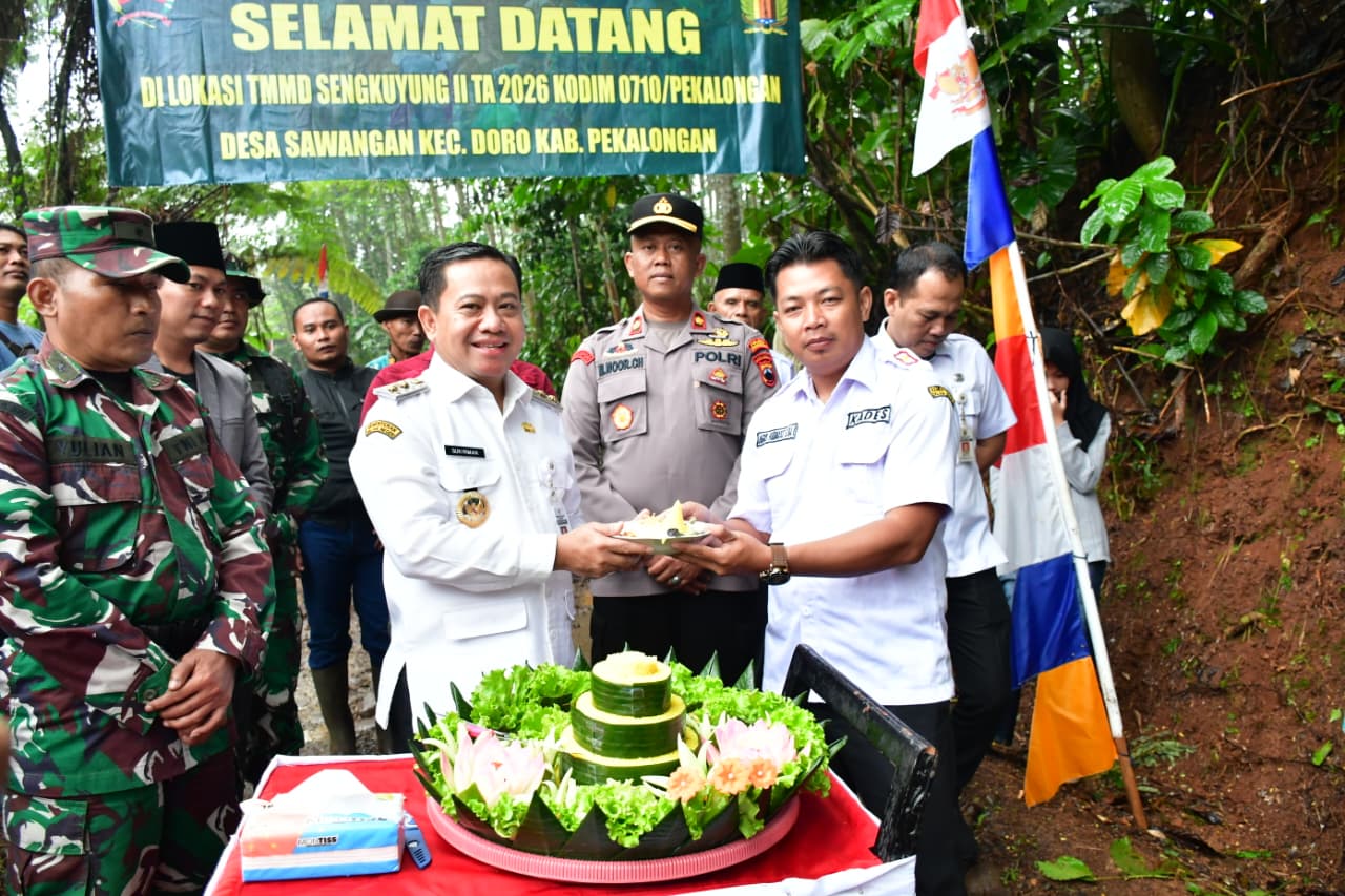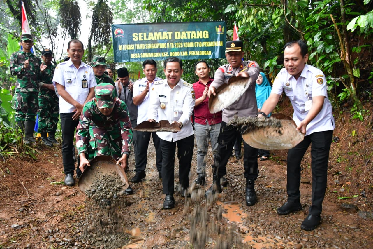 KAJEN – Pelaksana Tugas (Plt.) Bupati Pekalongan, H. Sukirman, S.S., M.S., membuka kegiatan TNI Manunggal Membangun Desa (TMMD) Sengkuyung Tahap II Tahun Anggaran 2026 Kodim 0710/Pekalongan di Desa Sawangan, Kecamatan Doro, Kabupaten Pekalongan, Rabu (22/4/2026) pagi.