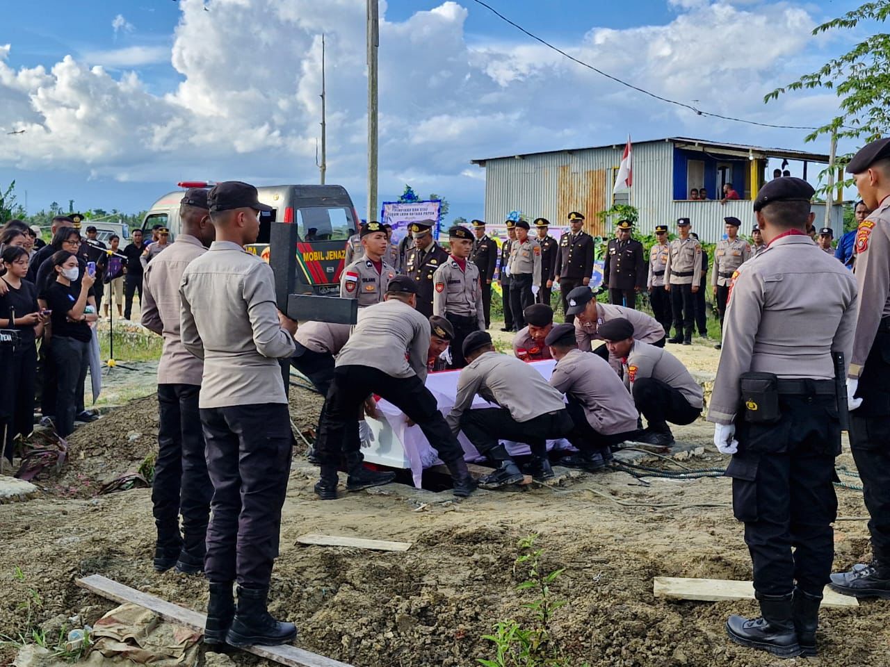 Rangkaian acara dimulai dengan ibadah pelepasan almarhum, dilanjutkan upacara kedinasan, penyerahan jenazah dari pihak keluarga kepada institusi Kepolisian, hingga prosesi pemakaman secara hormat di TPU Koya Barat. Upacara berlangsung dengan penuh penghormatan, ditutup dengan peletakan karangan bunga dan penghormatan terakhir kepada almarhum AIPDA Oktovianus.