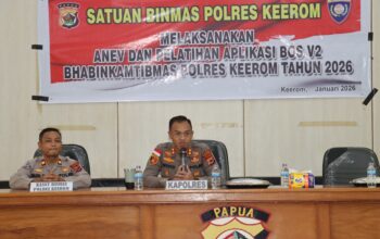 Journal News.id – Dalam rangka penguatan sinergitas dan stabilitas wilayah Kabupaten Keerom Tahun 2026, Polres Keerom turut hadir dan berpartisipasi aktif dalam kegiatan Apel Gabungan ASN, TNI dan Polri yang bertempat di Lapangan Sepak Bola Swakarsa, Kampung Asyaman, Distrik Arso, Kabupaten Keerom, Senin (12/01/2026).