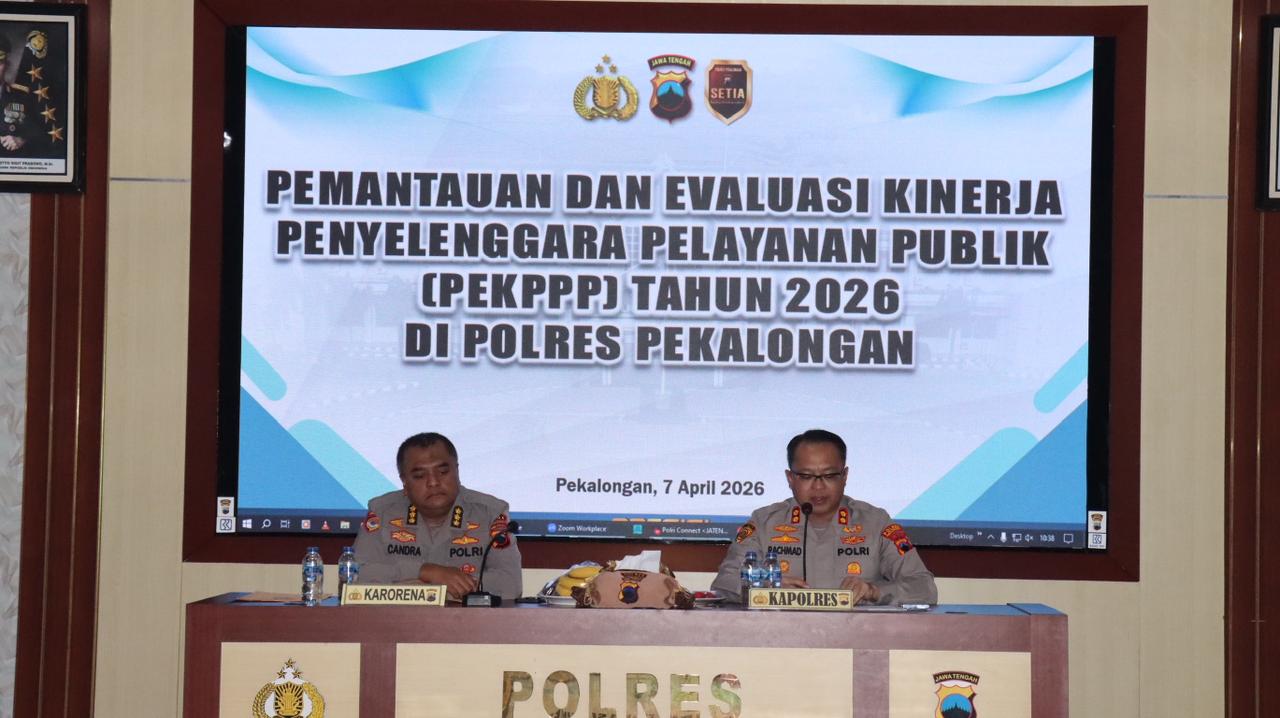 Polres Pekalongan – Polda Jateng – Polres Pekalongan menerima kunjungan tim Biro Perencanaan (Rorena) Polda Jawa Tengah dalam rangka pelaksanaan asistensi, pemantauan, serta evaluasi kinerja penyelenggaraan pelayanan publik. Kegiatan tersebut berlangsung pada Selasa, 7 April 2026, bertempat di Aula Polres Pekalongan.