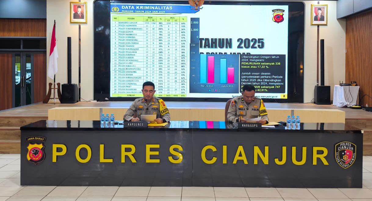 ” Meski mengalami penurunan dibandingkan Tahun 2024 yang mencapai 1.778 penyelesaian perkara. Polres Cianjur terus melakukan evaluasi dan peningkatan kualitas penyidikan guna meningkatkan rasio penyelesaian perkara di tahun berikutnya,” ungkapnya.