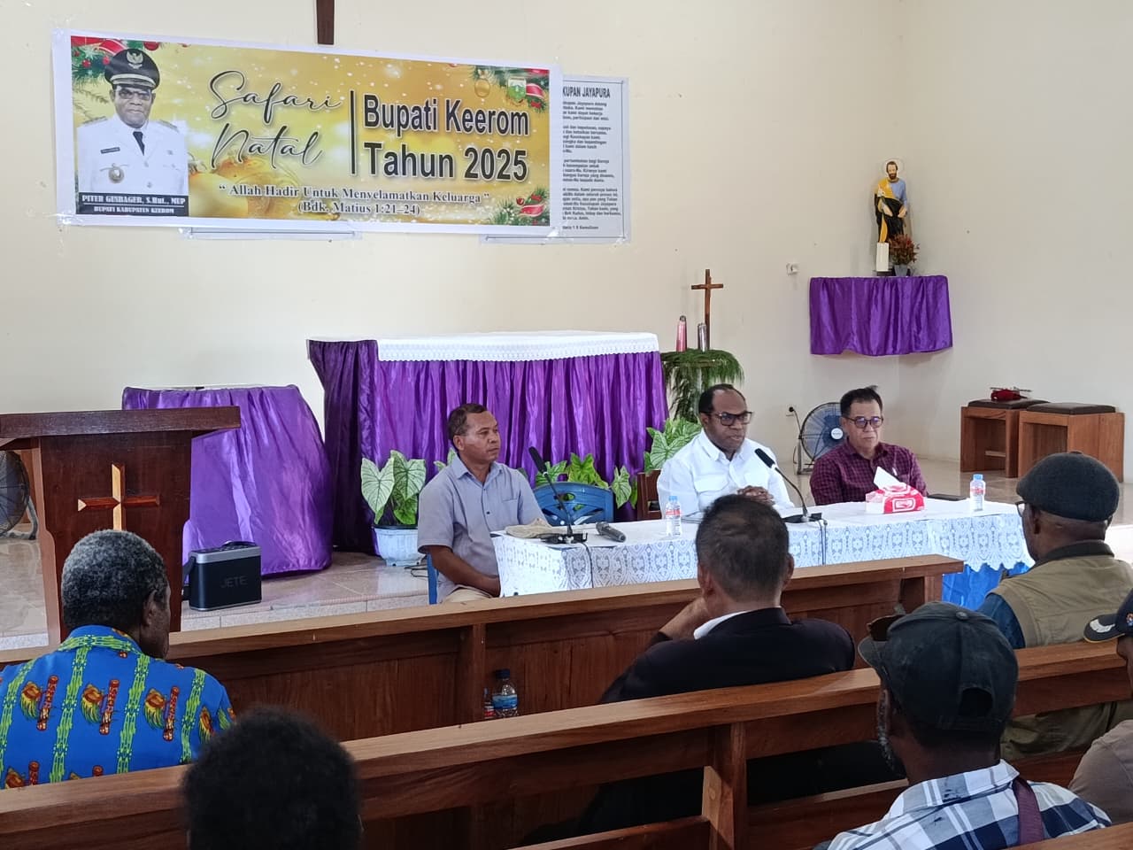 Mendekati perayaan Natal 25 Desember 2025 ini, Bupati Gusbager kembali melalui program Safari Natal menyalurkan bantuan Natal sebesar 1,5 Milyar bagi jemaat dalam naungan Persekutuan Gereja-Gereja Keerom (PGGK), Sabtu (13/12/25) di Gereja Katolik St. Maria Assumpta Bate, Bibiosi.