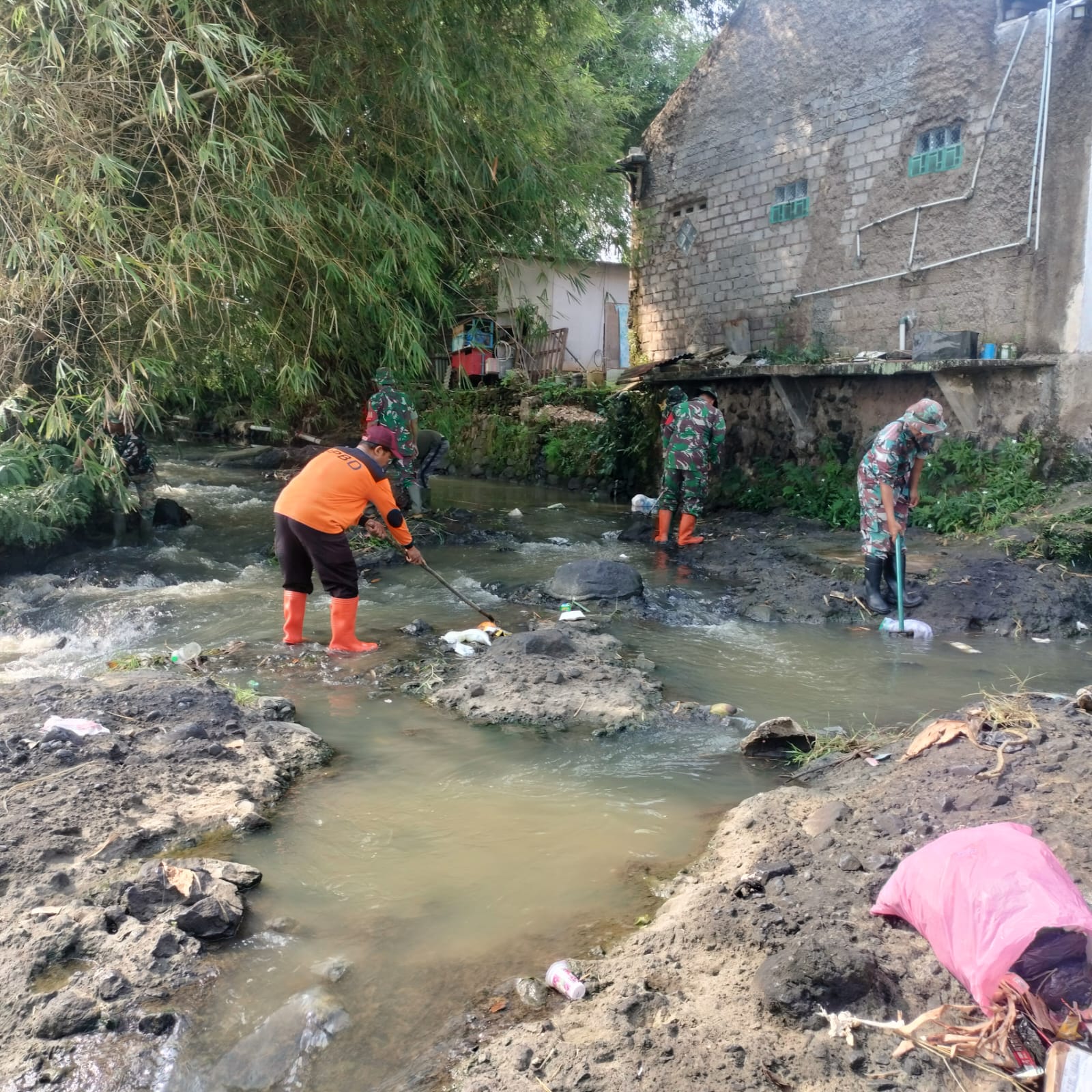 Subsektor 3, dengan tanggung jawab wilayah kerja di Kecamatan Ciranjang dan Kecamatan Sukaluyu, yang dipimpin Peltu Asep Hermawan, selalu rutin melaksanakan pembersihan sampah di aliran sungai yang bermuara langsung ke sungai Citarum. Kegiatan pembersihan sampah kali ini dilaksanakan di aliran sungai Cikamunding, anak sungai Citarum, yang berlokasi di Kampung Pasir Loji RT 02/03 Desa Sukasirna, Kecamatan Sukaluyu, Kabupaten Cianjur, Jawa Barat, Kamis (2/4/26).
