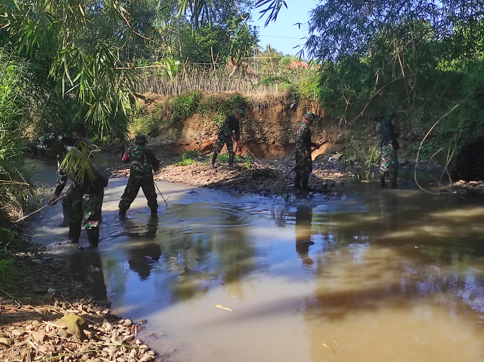 Cianjur || Satgas Sub Sektor 04 Mande Sektor 6 Citarum Harum melaksanakan pembersihan sampah di anak Sungai Cikunul, Kampung Serang Rt 05/06 Desa Warudoyong Kecamatan Cikalongkulon pada Kamis (12/3/2026).