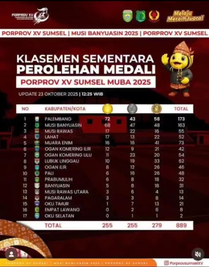 Sumsel – Lahat // Pekan Olahraga Tingkat Provinsi Sumsel ke XV di Muba yang di ikuti 17 Kabupaten dan Kota dalam acara pembukaan Porprov Sumsel di Muba di buka langsung oleh Gubernur Sumsel Herman Deru, dihadiri kepala daerah dan wakil kepala daerah pada tanggal 18 Oktober 2025