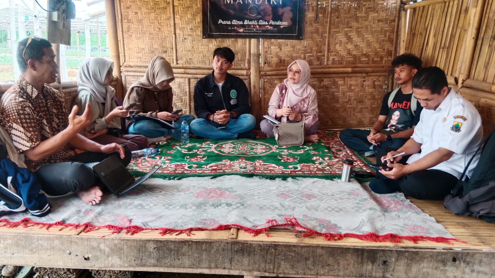 Dengan hanya empat belas orang yang hadir. Namun semangat yang muncul melebihi jumlah kursi di ruangan itu. Mereka berasal dari berbagai latar belakang akademisi, petani, pemerintah, hingga pegiat lingkungan. Hadir dalam pertemuan tersebut, Seperti Dr. Widya Sari, S.P., M.P., Dosen Fakultas Pertanian Universitas Suryakancana, bersama 6 mahasiswa yang akan terjun ke lapangan untuk penelitian, N.K, Sanusi, Kepala Desa Sindanglaya, Asep Bani, S.A.P. Kepala UPTD Pelayanan Pertanian Kecamatan Pacet, Denden Muflihudin, S.P., Kepala Balai Penyuluh Pertanian Pacet, Ridha Fuja Andina dan Jana Rojana, Ketua dan anggota Kelompok Tani Mandiri, Andri, S.H. Aktivis hukum dan pemerhati lingkungan, dan Herry Trijoko, Koordinator Komite Sub DAS Cikundul.