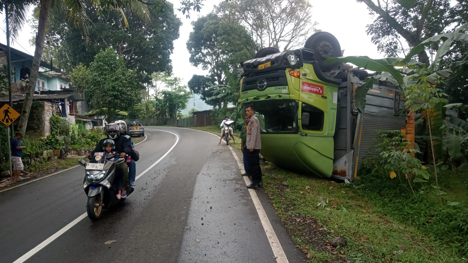 Truck Hino Terguling di Cikalongkulon, Sopir Selamat